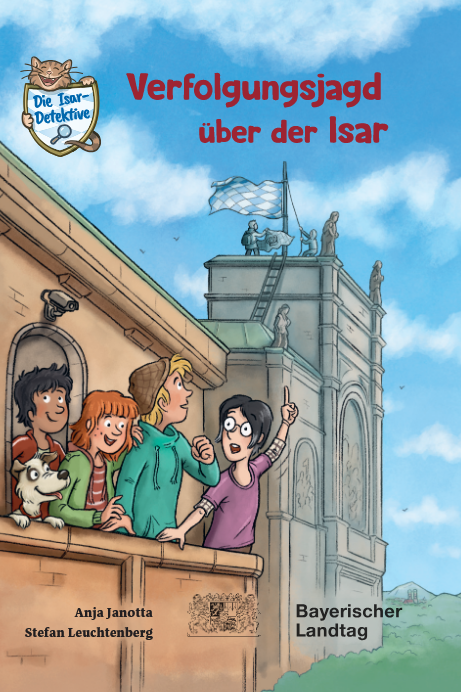 Gerade in solchen Momenten wie bei der Buchvorstellung wird es mir immer wieder bewusst, welches Privileg es ist, so vielen Kindern die Geschichten um die Isar-Detektive vorzulesen, sie zum Schmunzeln zu bringen und vor allem: Für die Demokratie auf diese Weise Werbung zu machen. Um nichts Geringeres geht es beim fünften Band der Kinder-Krimi-Serie des Bayerischen Landtags, den ich wieder schreiben durfte. Denn hier will eine verwirrte Gruppe von Aktivisten die Monarchie zurück nach Bayern bringen. Dazu beschmieren sie den LandTruck, stören Plenarsitzungen und wollen sogar eine Königsfahne hoch auf dem Landtag hissen. Nur die Isar-Detektive können das verhindern und geraten hoch über der Isar auf dem Dach des Maximilianeums selbst in höchste Gefahr.